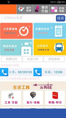 12306火车票信息查询,旅行信息、飞机票订购,过年安安心心的回家吧 .软件新增各类生活工具,除了公交长途客车信息查询外,还有各类日常工具,贴心帮助,是生活中一个不可或缺的软件