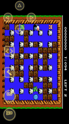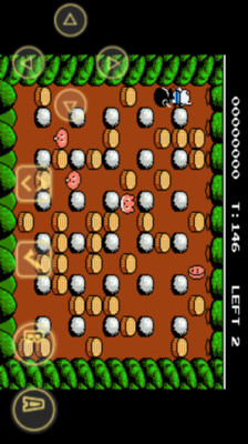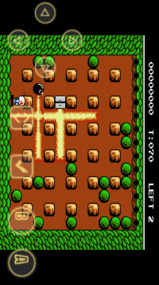 炸弹人一个非常好玩的游戏,主人公使用放置炸弹的方法来消灭敌人并寻找每局隐藏在墙里的暗门来过关。不同外形的敌人具有不同的属性,需要使用不同的技巧来对付。中途有若干种宝物可以拾得,以更有利于消灭敌人过关。不同的宝贝,具体有不同的属性。每关有一定的时间限制,到时间不能完成后,会出现最难对付的敌人,当然如能顺利消灭后,还是可以正常过关的。关卡共50局,需将画面上的敌人全部消灭方可进入门中过关。
