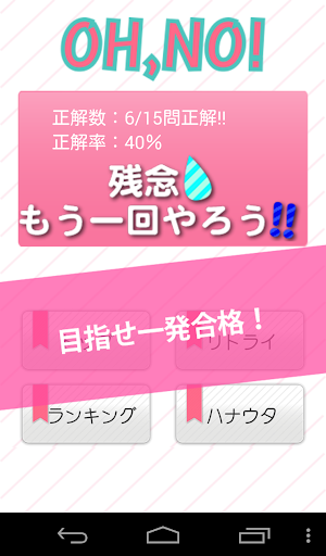 選んだジャンルの中からランダムで15問出題されます。