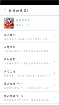 《燃烧的蔬菜3攻略》客户端,是由讯游提供,专门为喜爱手游的用户提供文字、图片、视频攻略以及资料库的软件。每天都会及时更新,让您掌控最新的游戏资料与游戏攻略,让用户更轻松、愉快的体验游戏的乐趣。 如果有什么问题和建议可以反馈给我们,我们会努力做的更好!