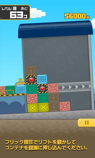 ・フリック操作でリフトを操作し、コンテナを倉庫に押し込んでいってください。