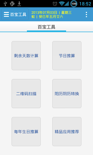 (2)增加百宝箱工具,方便您进行日期计算/日期转换/生日推算/二维码扫瞄等