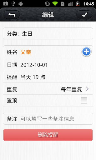 保存前如果选择了“纪念日”、“生日”、“其他”等相应的种类,这些选择也会被保存。