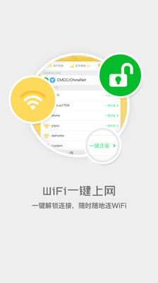1.附近WiFi一键连,千万WiFi热点数据让您随时随地一键连接无线网络