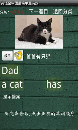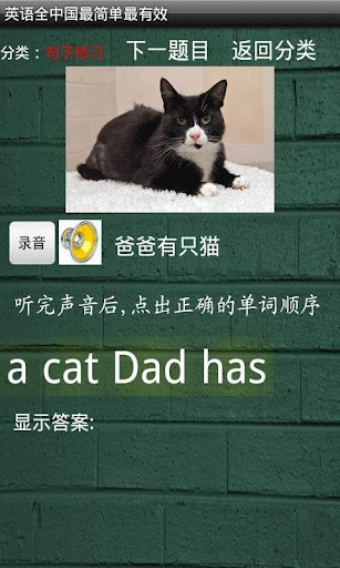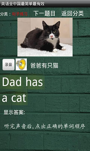 看完后,用我们软件听一句声音,然后把乱序的单词顺序排对。