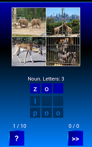 本邏輯性遊戲用於開發人類創造才能,為了您能夠猜準加密子,需要利用您表現出的機靈功能。正確答案總是隱藏於圖像和您的聯想方法的結合,該應用程序是為兒童和成人是有用的,保證很好發展您的注意力、記憶力、想像力、幻想力。為了測試自己的學問水平,可以安排幾個朋友一起來舉辦競賽。本程序界面的簡單性、HD平板電腦支持、色彩繽紛的專題照片、這都是讓學者們把注意力集中不但在猜測生詞上,而且同時集中在學外語過程以及鞏固學過的東西上。學習外語的學者將會很輕鬆地掌握生詞,學會生詞和擴大自己的詞彙量。同時,本遊戲由使用配音和配圖支持下,保證學習者掌握好外語的標準發音及外語的正字法。