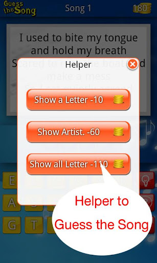 猜歌是讓你讀了歌詞,並猜測與18個字母和觀看在線音樂視頻歌曲比賽。