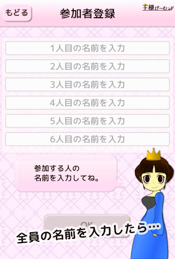 参加人数と名前を入れたらゲームスタート。「誰が」「誰に」「何をする」かをAndroidが簡単に選んでくれます!