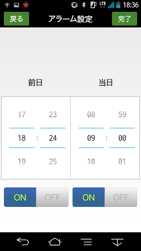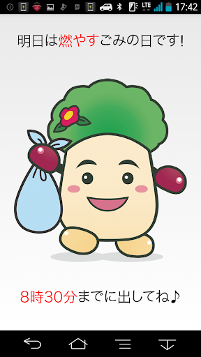 ごみの収集日をアラームでお知らせします。お知らせする時間はユーザーが自由に設定することができます。