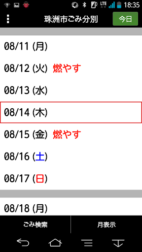 お住まいの地区を設定するだけで自動的に地区ごとのごみ収集日を読み取ります。
