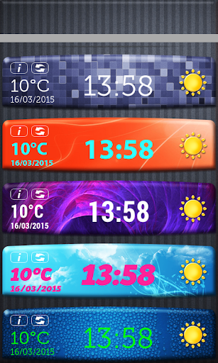 這是最好的Android™時鐘和天氣小工具的各種口味,提供時尚的時鐘,你可以很容易地嵌入到你的屏幕上!你會看到雪花,如果下雪,雨滴,如果下雨,太陽如果它的溫暖和陽光充足之外。獲取高點和日常溫度和預測的低點。嘗試現代“時鐘部件”和跟風。