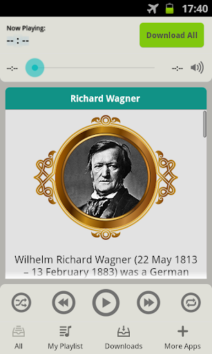 在這種android 免費應用程式,您可以選擇了解更多關於在理查德•瓦格納傳記作曲家,或聽一些作曲家的最流行的古典音樂。