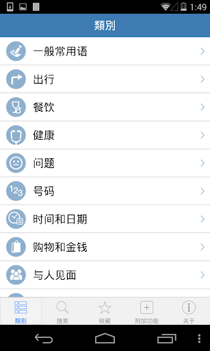 ✓ 按照日常會話場景分類,包括:基本資料、旅行、餐飲、健康、問題、號碼、時間和日期、購物與金錢 — 這堪稱目前最完美的旅行翻譯軟件。