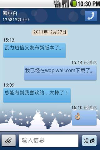 瓦力短信必将不断完善,与手机QQ、GO SMS Pro、手机旺旺、掌上百度、GO Message Widget、Handcent SMS一样,成为安卓手机用户的必备软件。