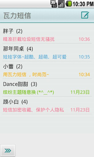 瓦力短信必将不断完善,与手机QQ、GO SMS Pro、手机旺旺、掌上百度、GO Message Widget、Handcent SMS一样,成为安卓手机用户的必备软件。