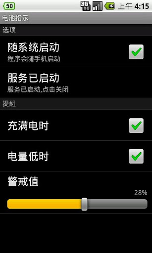 这是一个在手机的状态栏显示手机电池电量提示的小软件。