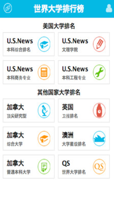 院校库搜索-你不仅可以搜索到美国院校、加拿大院校、英国院校、澳洲院校等,还可以查看世界大学排名情况。