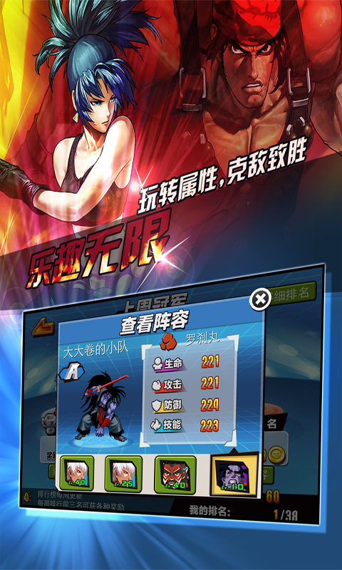 拳皇、三国志、名将、侍魂、合金弹头...当这些经典街机游戏中的人物集合在一起,世界会变成什么样?坐拥不知火舞与春丽,号令五虎将,与八神、草S京并肩作战,降服大蛇一族...在这里,一切皆有可能!还原原作的画面风格,可收集上百个经典街机人物,培养他们成为街机世界中最强的斗士。经典招式重现,效果更炫更酷!组建最强最梦幻的街机队伍,不论是重现原作的经典组合,还是狂霸酷拽吊的全BOSS队,亦或是波涛“胸”涌的软妹子队,都由你来决定!带领自己的队伍打败其他玩家完成制霸,成为真正的游戏厅皇者!