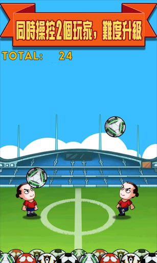 點擊左右兩邊的屏幕控制左右兩邊的玩家來踢腿顛球