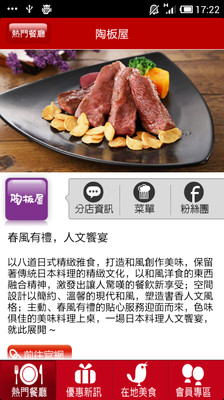 《疯美食》网罗了王品集团各品牌的店家信息与好康优惠,,立即下载,百家美食餐厅带着走!