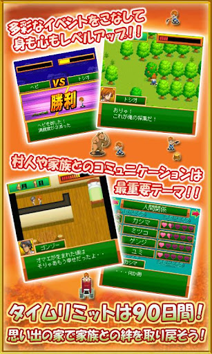 時には野山の野生動物と死闘を繰り広げたり、畑を作って自給自足の生活をしてみたり…。もちろん、家族やご近所さんとのコミュニケーションも重要です!田舎という広大なフィールドを舞台に、力だけでなく心も一緒にレベルアップしましょう!