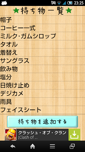 自分自身で持ち物リストを作成できるので、登山をする際に確認することができます。