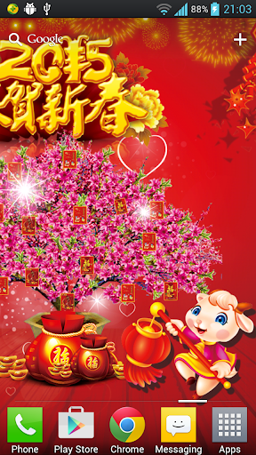 您還在爲新年發財樹布置忙碌嗎?現在擁有這個app您不用花費任何費用,任何時間就能擁有一個漂亮的新年發財樹,而且您不用擔心他會枯萎也不用擔心其他的額外費用。趕緊下載它,安裝在手機讓您擁有一個愉快的春節。在此預祝2015年能有好的財運、桃花運,萬事如意。如果您喜歡請給我們5星級的評論並且與您的家人和朋友分享它。謝謝!