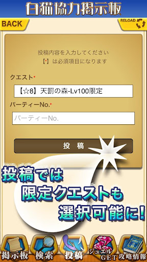 白猫プロジェクトを始めたばかりの初心者でも長くやっている上級者でも分かりやすいシンプル操作で希望の協力クエストをお手軽に募集&検索できちゃいます♪