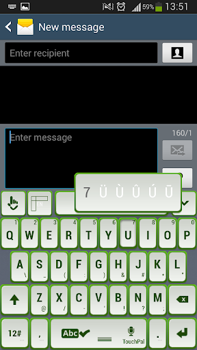 通过与真棒白色和绿色触宝主题定制他们尝尝新鲜,崭新的面貌为所有小工具. 纯白色和纯天然绿色的搭配将刷新你的头脑和感官. 选择这个美丽的,因此易于使用的键盘的主题,你会不会后悔. 开始新的一天的感觉精神抖擞,准备应付任何挑战. 感到鼓舞,并使用你的创造力每一天. 获取现在可爱的白色和绿色触宝,你会爱上它.