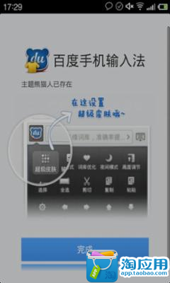 注意:此主题适用于Android2.2版本以上百度手机输入法