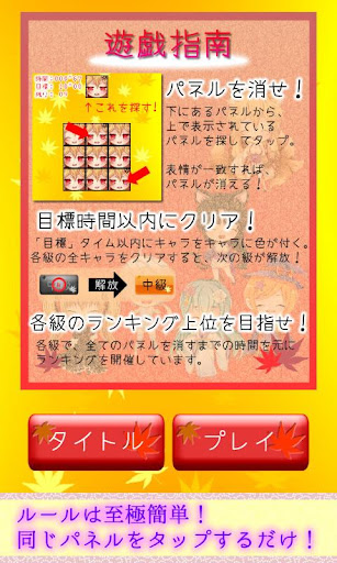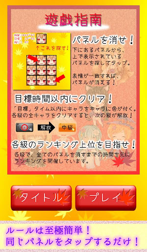 ・プレイ画面の上部に表示されているキャラのパネルと同じパネルを、画面中央のパネルから選んですべて消すのが目的です。