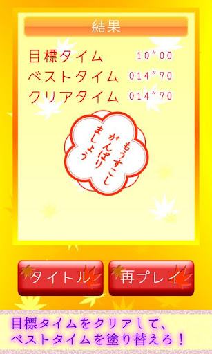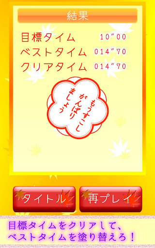 ・「初級」「中級」「上級」毎にステージクリアの目標タイムが設定されています。。