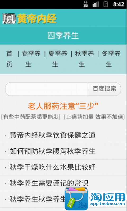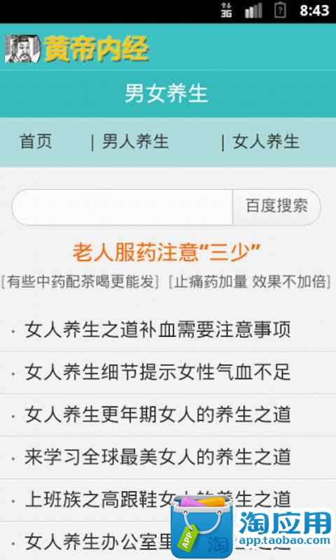 黄帝内经,养生之宝典主要包含养生之道,春夏秋冬季养生,男女养生,黄帝内经品读等模块