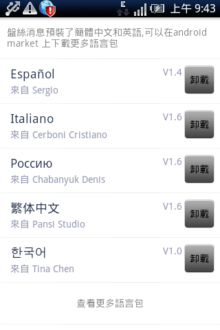 安裝了中文繁體語言包以後,如果您的系統語言設置為中文繁體,盤絲消息將會自動以繁體語言顯示