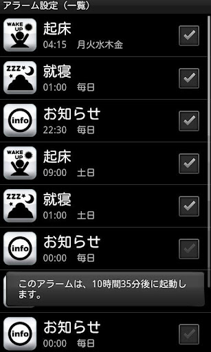 ●朝起きるときの目覚ましアラームだけでなく、夜の就寝時間の通知や、お知らせ用として設定するなど、使い方はアナタ次第。