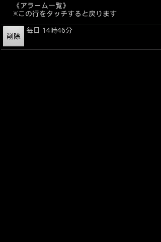 ・アラーム一覧で現在登録されているアラーム時刻の一覧が表示され、削除する事が出来ます。