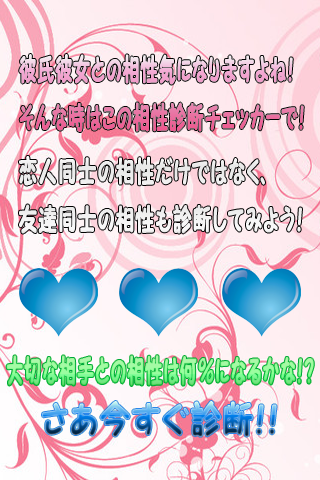 気になる相手や仲良しの友達など、二人の相性を測ってくれる無料アプリです♪