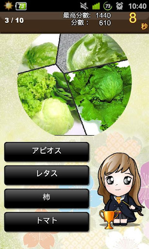「看圖學日語」是一款輕鬆的猜圖小遊戲,整理各式各樣的日文單字照片,請依照題目給的圖片提示猜出正確的單字,越快答對題目分數越高!