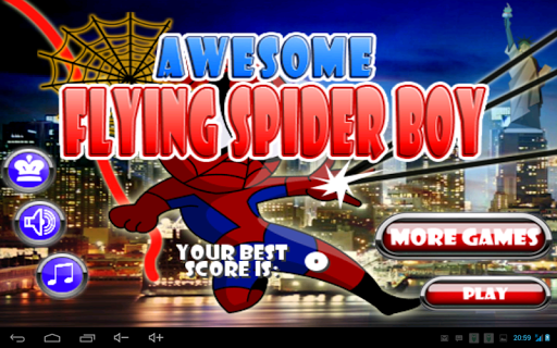 蜘蛛男孩誰住在紐約市正在努力複製蜘蛛俠,幫助紐約人。真棒飛天蜘蛛男孩是一個最好的遊戲動作給大家,特別是對男孩和孩子。幫助他積累硬幣紐約市,並將其提供給窮困潦倒在紐約。在任何情況下,不要停留在球如願長光的事實,球被可靠地保持走動,並能得到蜘蛛男孩弄暈了!你應該記住它是昆蟲的人可以通過觸摸屏幕兩次反彈的兩倍。