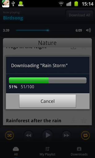 在此應用程序中的所有歌曲將被從互聯網上直接播放,所以你必須有互聯網接入(无线上网推薦)為了聽這些沉睡的聲音。然而,有一個選項,供您下載睡覺你喜歡的任何聲音,有它在您的手機上使用它時,你就沒有互聯網。