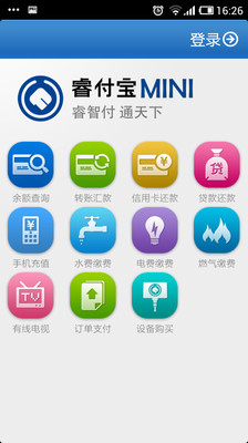 本产品由捷付睿通股份有限公司(以下简称捷付睿通)独立开发,供用户通过手机进行银行卡余额查询、转账、信用卡还贷、水电燃气缴费、有线电视缴费、手机话费充值等业务操作的电子商务类应用软件。所有用户均可免费下载、安装本客户端软件。用户使用此软件,必须同时配备捷付睿通的睿付宝MINI刷卡器,方能实现刷卡查询、支付操作。