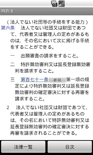 条文番号の横の「参照ボタン」をタップすると、参照ウィンドウが現れてその条文が表示されます。