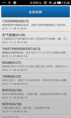 2)临时解密只对当前会话界面短信内容解密不更新短信库中内容,内容或界面重新加载后即可恢复加密内容,该操作不需要重新加载短信列表和会话,速度较快,推荐使用此功能查看已加密短信。