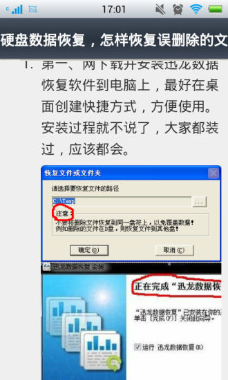由于携带方便,储量大,大容量的U盘和硬盘成了人们储存资料的重要携带工具。但是由于各种各样的原因,U盘或者硬盘经常会出现一些故障,导致里面的文件丢失损坏,或者由于人为原因误删其中的重要资料,给人们的生活学习工作带来诸多的不便。硬盘数据恢复是一款针对此种问题设计的专业APP。本软件集合了硬盘数据恢复的诸多方法以及详细的教程,图文并茂,步骤详细,讲解清晰,让人一眼看懂,轻松学会。