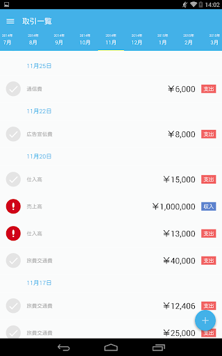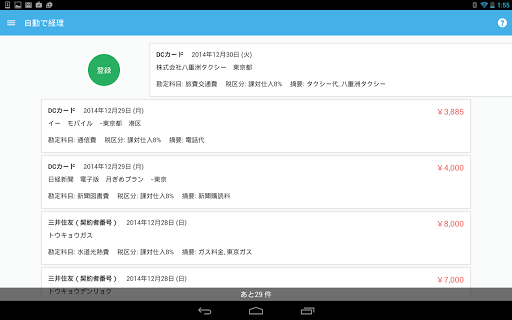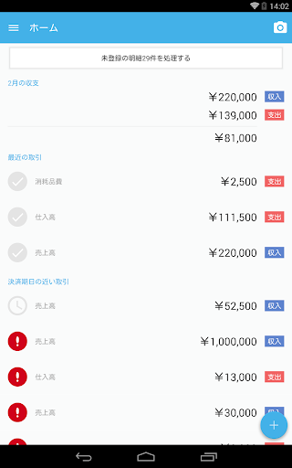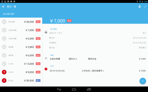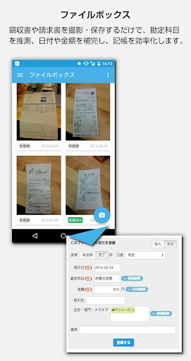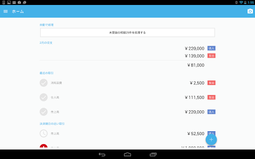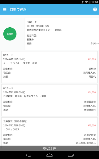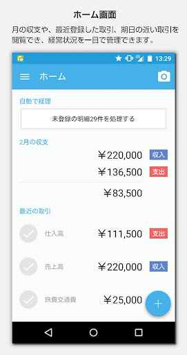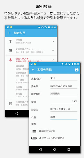 - 家計簿感覚で出先でサッと簡単に取引登録できます。