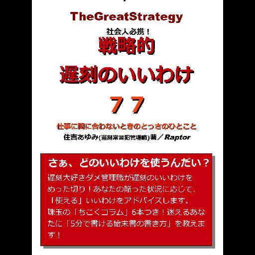 遅刻大好きダメ管理職を突っ走る住吉あゆみが、社会人に必要な実用的ないいわけを77本厳選しました!朝、グダグダ悩むぐらいなら、この1冊から気分に合わせていいわけをセレクトして下さい。しかも戦略的に選べます!