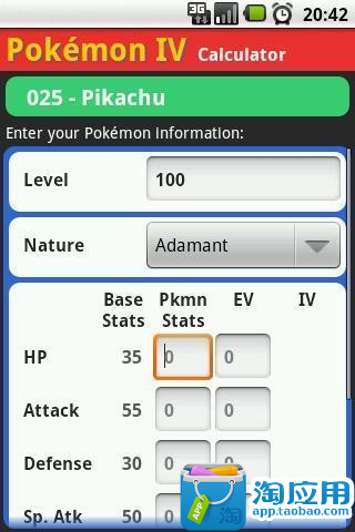 与神奇宝贝第四计算器,你可以很容易地计算出单个值(四)你的神奇宝贝。 这个计算器可以用来为每一个第3和第4代游戏(红宝石,蓝宝石,祖母绿,火红色,叶绿色,钻石,珍珠,白金,心魂银)。 版本0.1测试版 - 第一版。 请报告任何错误。