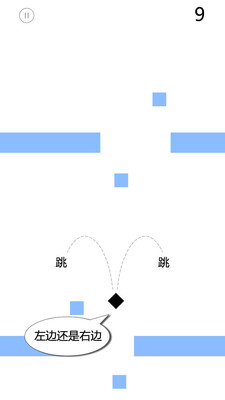 2.简单的操作,只需要点击屏幕左右两边,控制小方块向上跳动