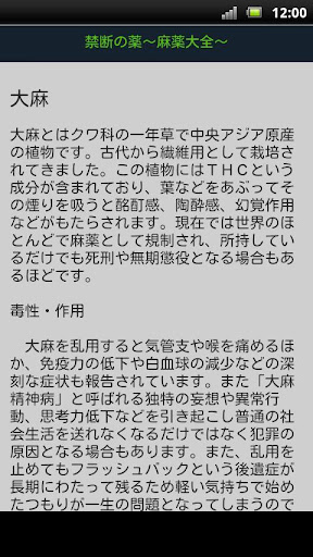 ■いろいろな麻薬の解説が60項(~随 時更新)ラインナップされているだけのアプリです。