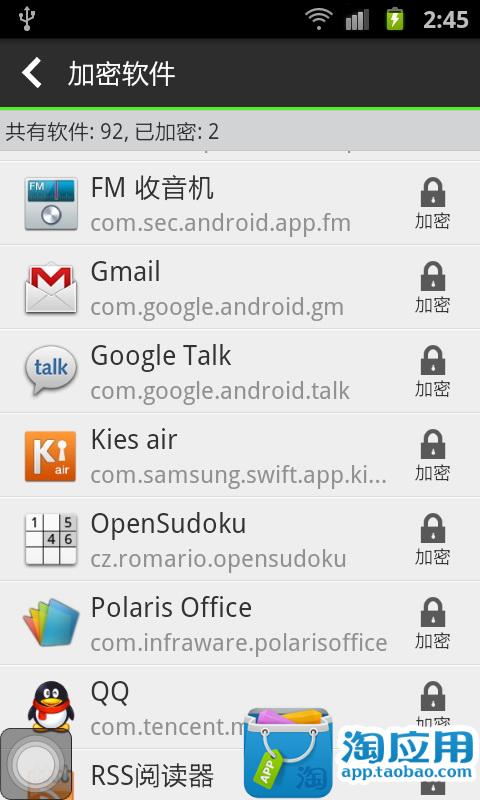 3.可查看手机安装的软件,对需要加密的软件进行加密